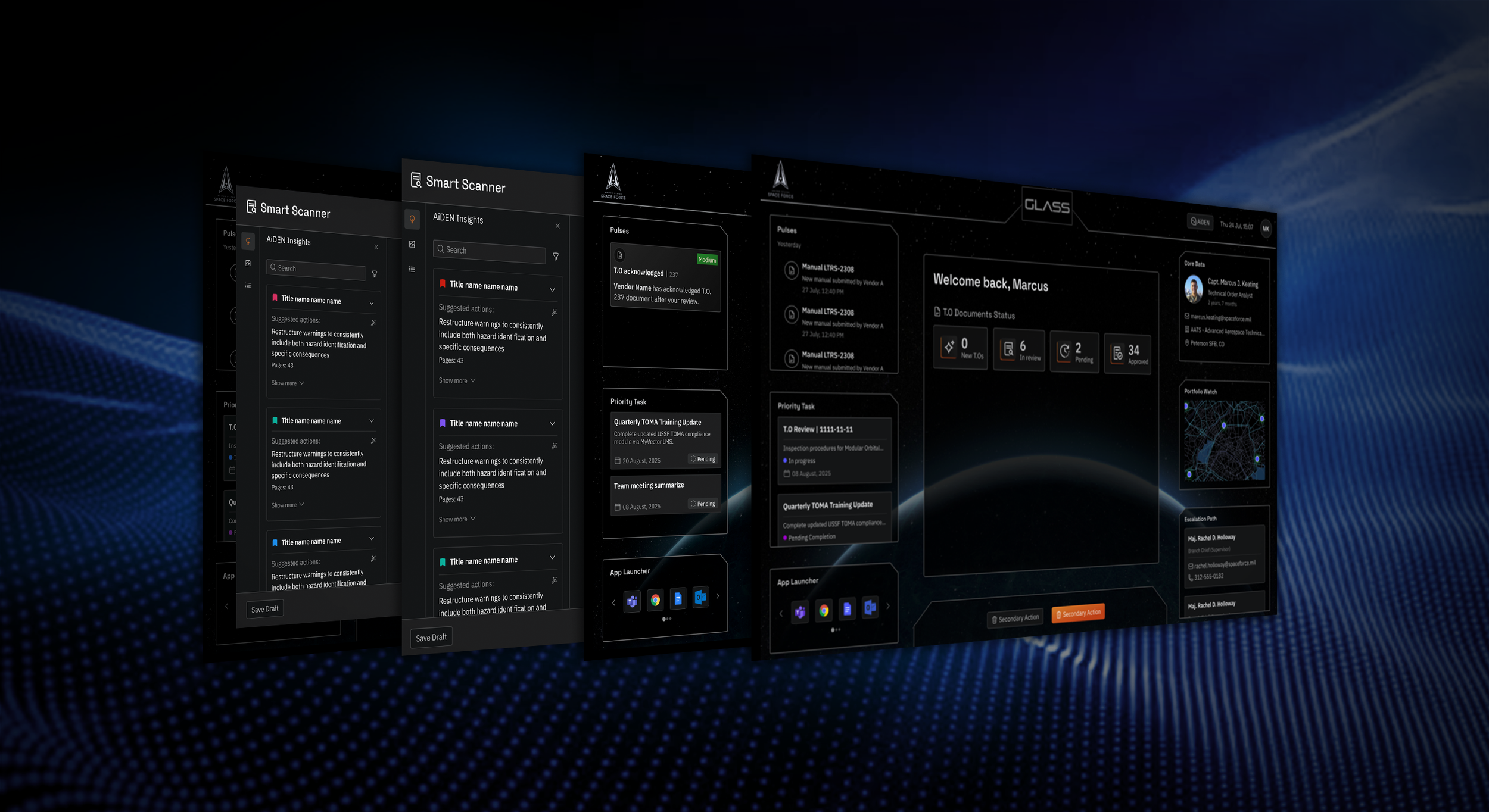 The centralized interface where all XC3 capabilities converge. Glass delivers a single pane of glass across domains and functions, enabling operators to interact with AiDEN and LiAM, access mission-critical Warfighter Hubs, and engage securely through Zero Trust protocols. It adapts to user roles and operational tempo, providing real-time visibility, insights, and action pathways.